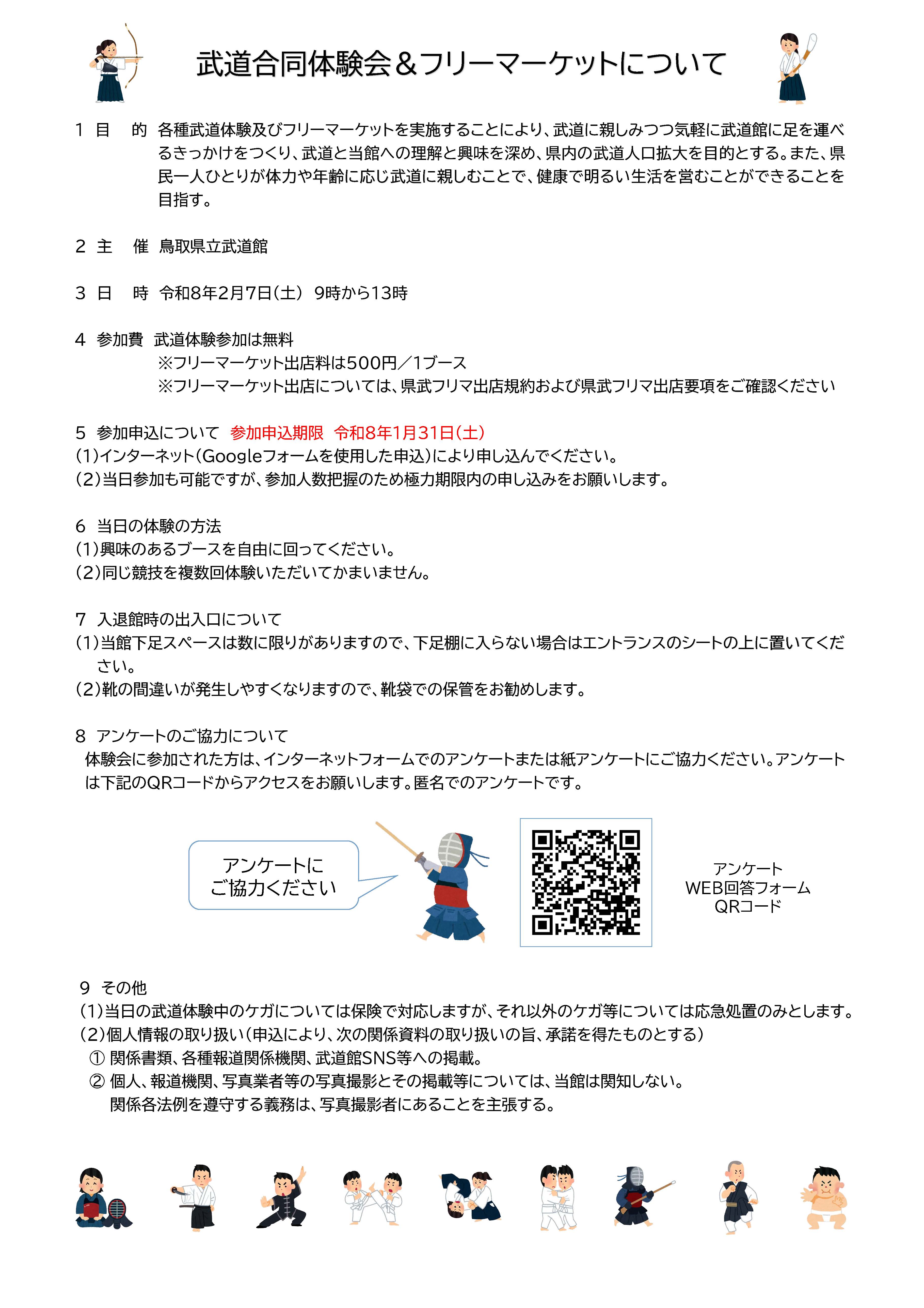 武道合同体験会参加者・フリーマーケット出店者募集のお知らせ